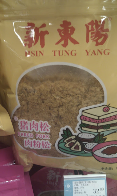 des sachets de poudre de viande comme là, de la poudre de viande de porc. Je n'ose pas imaginer l'usine qui fabrique ça!! Visiblement sur le dessin, on peut en mettre dans les sandwichs, le riz, ou les bao (sorte de petits pains chinois farcis de viande ou légumes).